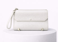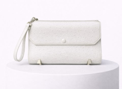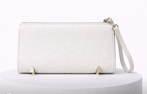• White ostrich embossed wristlet clutch