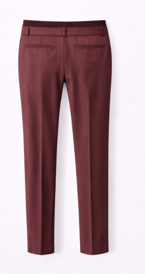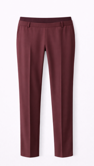 • Flat front straight pant with elastic waistband detail