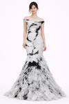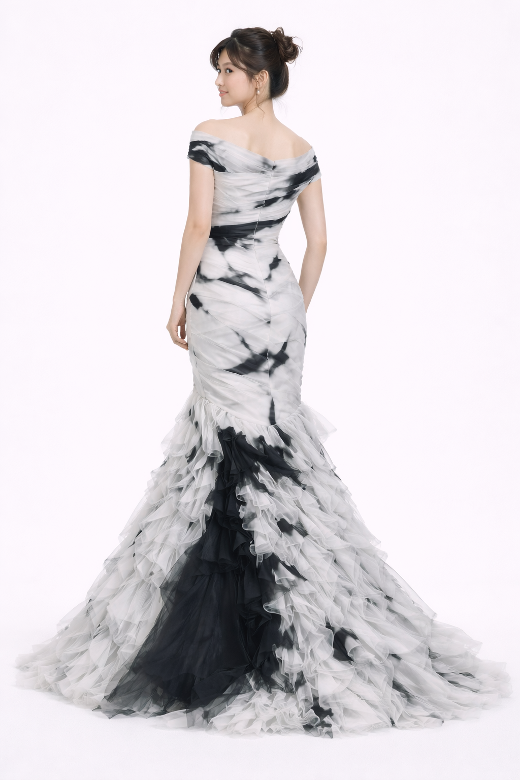 • Off the shoulder pleated mermaid gown