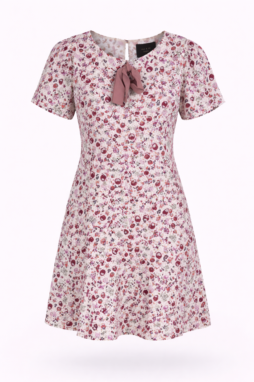 • Short sleeve dress with bow at neckline and key hole closure