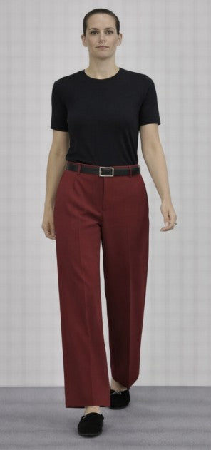 • Flat front straight pant with elastic waistband detail