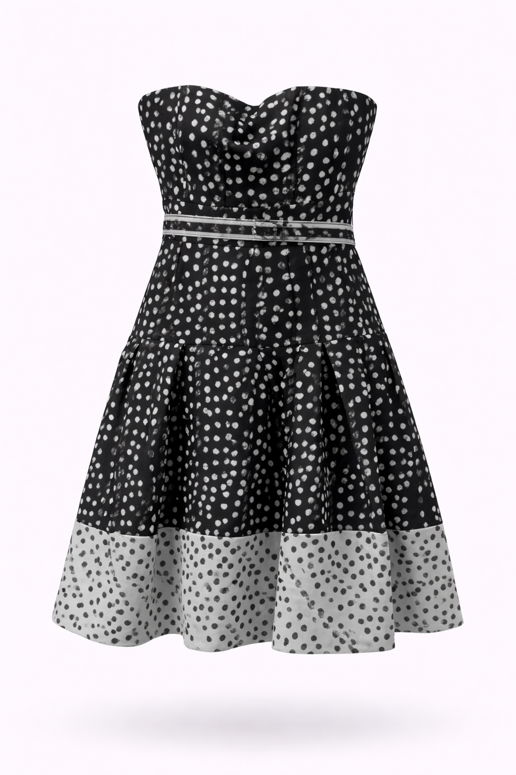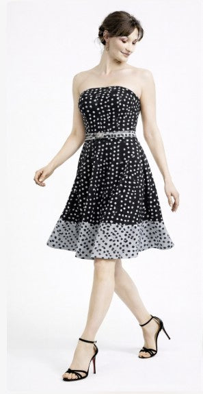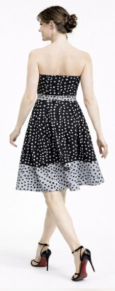 • Strapless fit and flare dot with self belt