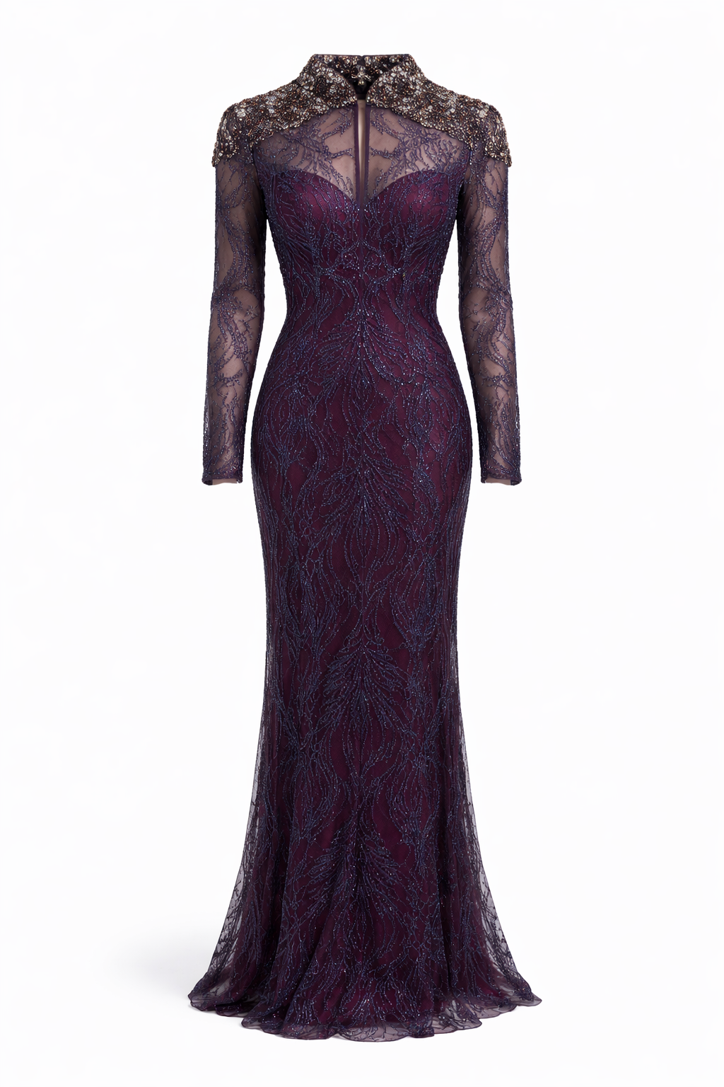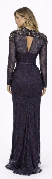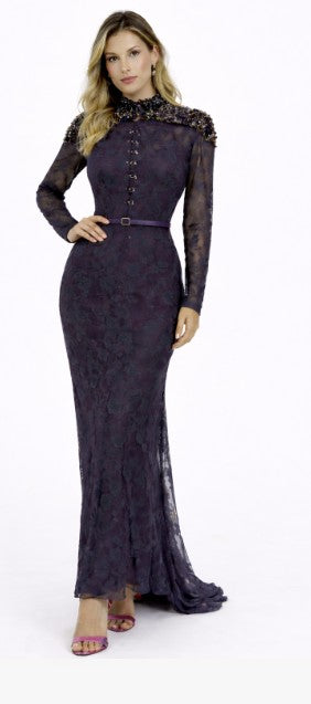 • Long sleeve lace mermaid gown with center back and center front closures
