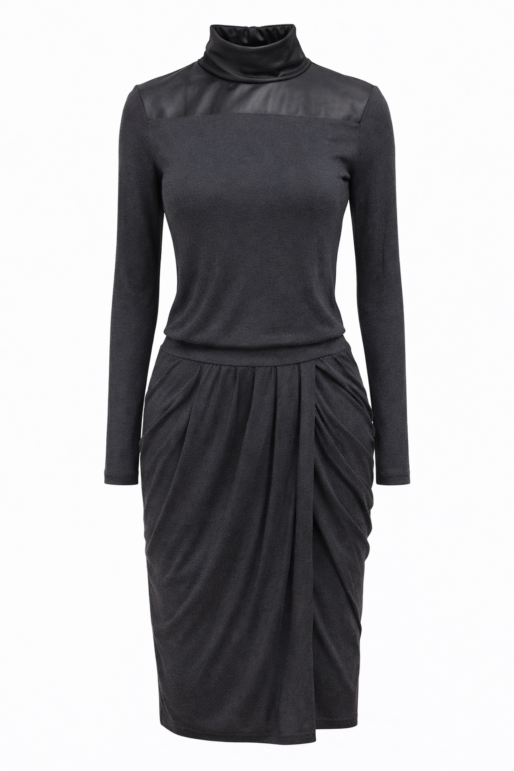 • Long sleeve jersey dress with leather details