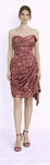 • Strapless draped brocade cocktail dress