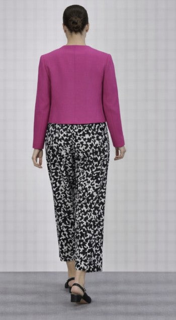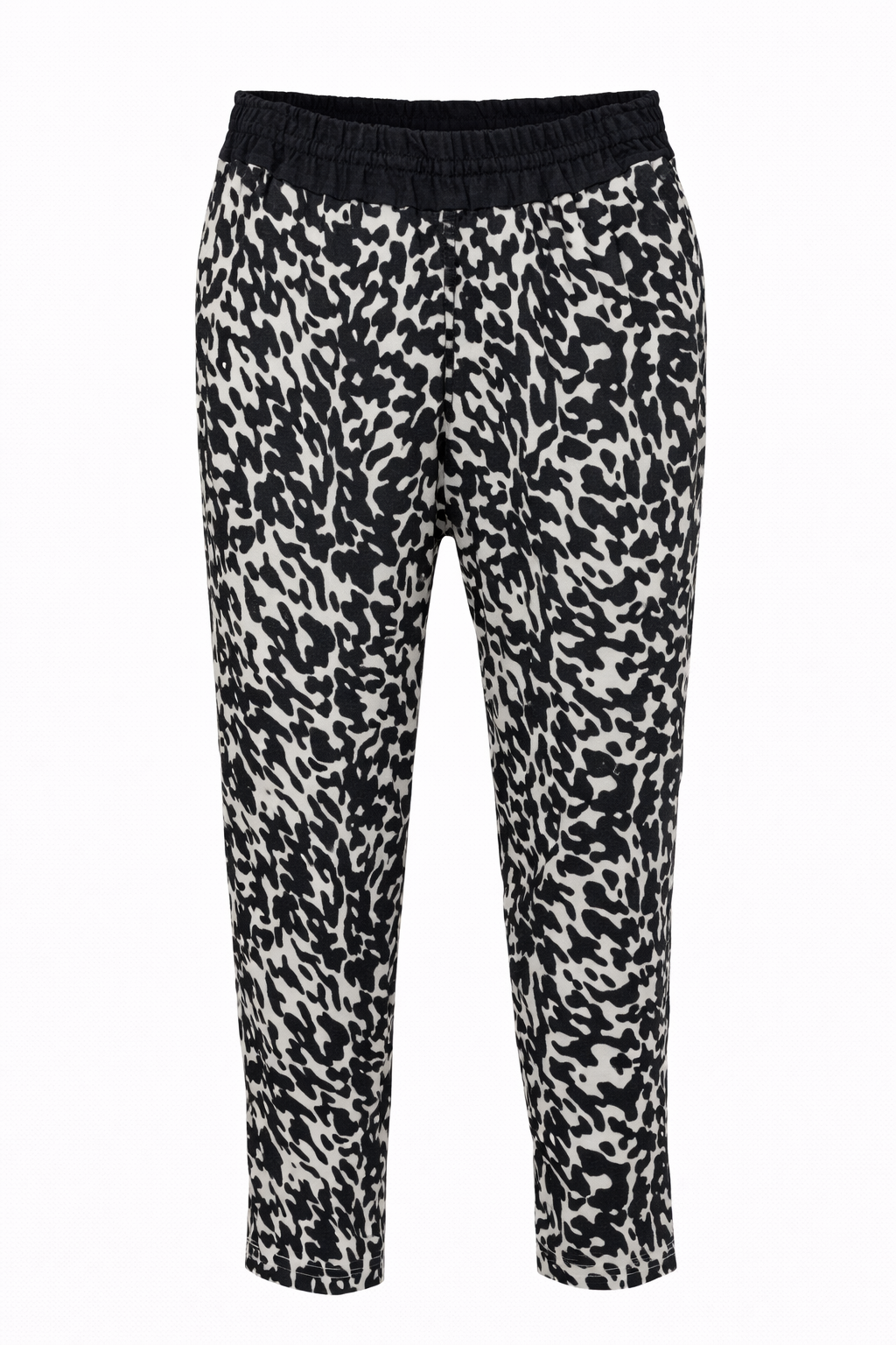 • Pajama print silk pant with black waistband