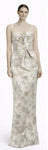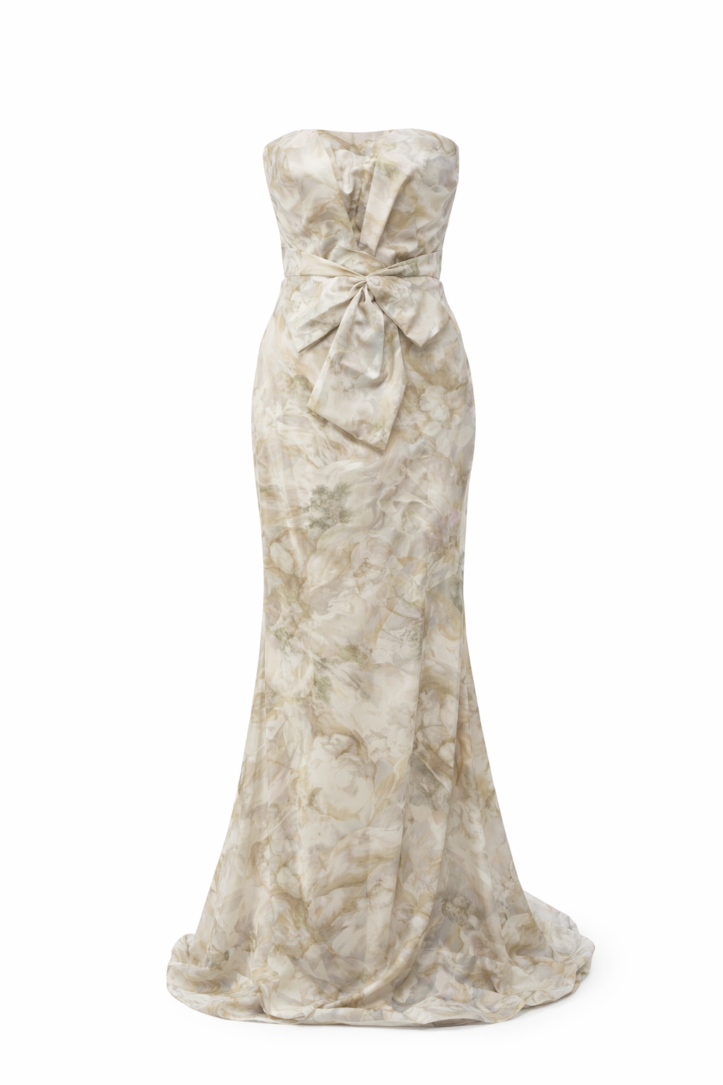 • Strapless gown with fold detail at the bodice and bow detail at the waist