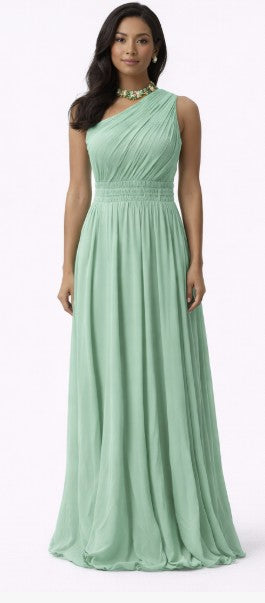 • One shoulder chiffon gown with embroidery detail