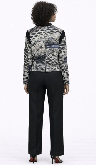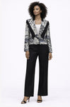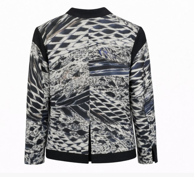 • One button  printed jacket with solid details at collar