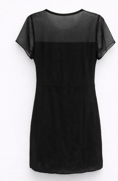 • Sheer sleeve short dress