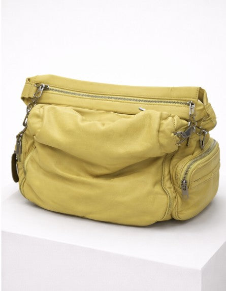• Yellow leather duffel bag