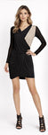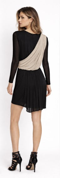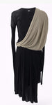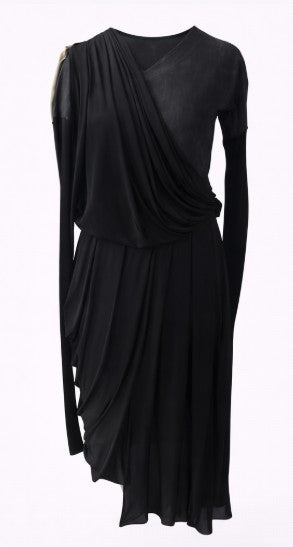• Asymmetrical long sleeve jersey dress with nude one shoulder drape