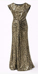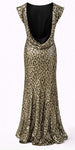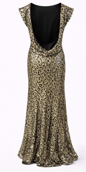• Beaded cap sleeve gown with cowl back drape