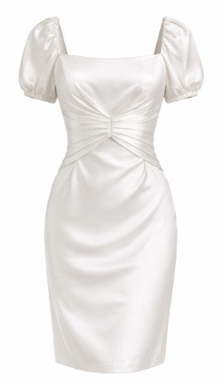• Bodice please straight dress with puff sleeves