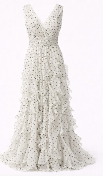 • V-neck sleeveless gown with ruffled skirt