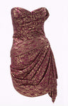• Strapless draped brocade cocktail dress
