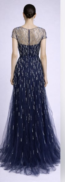 • Strapless ball gown with illusion beaded overaly