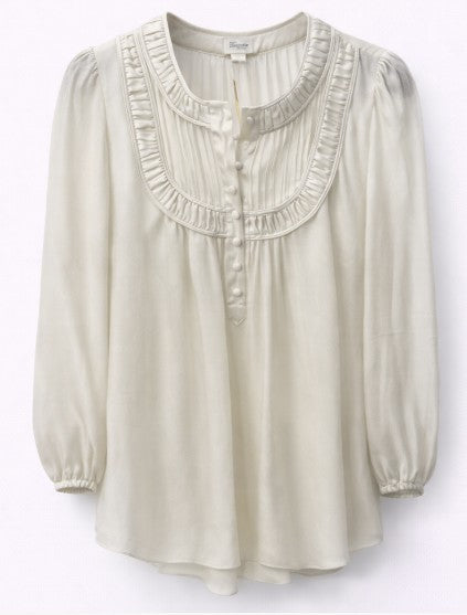 • 3/4 sleeve pleated front detail blouse