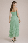 • Strapless chiffon gown with asymmetrical layers on skirt