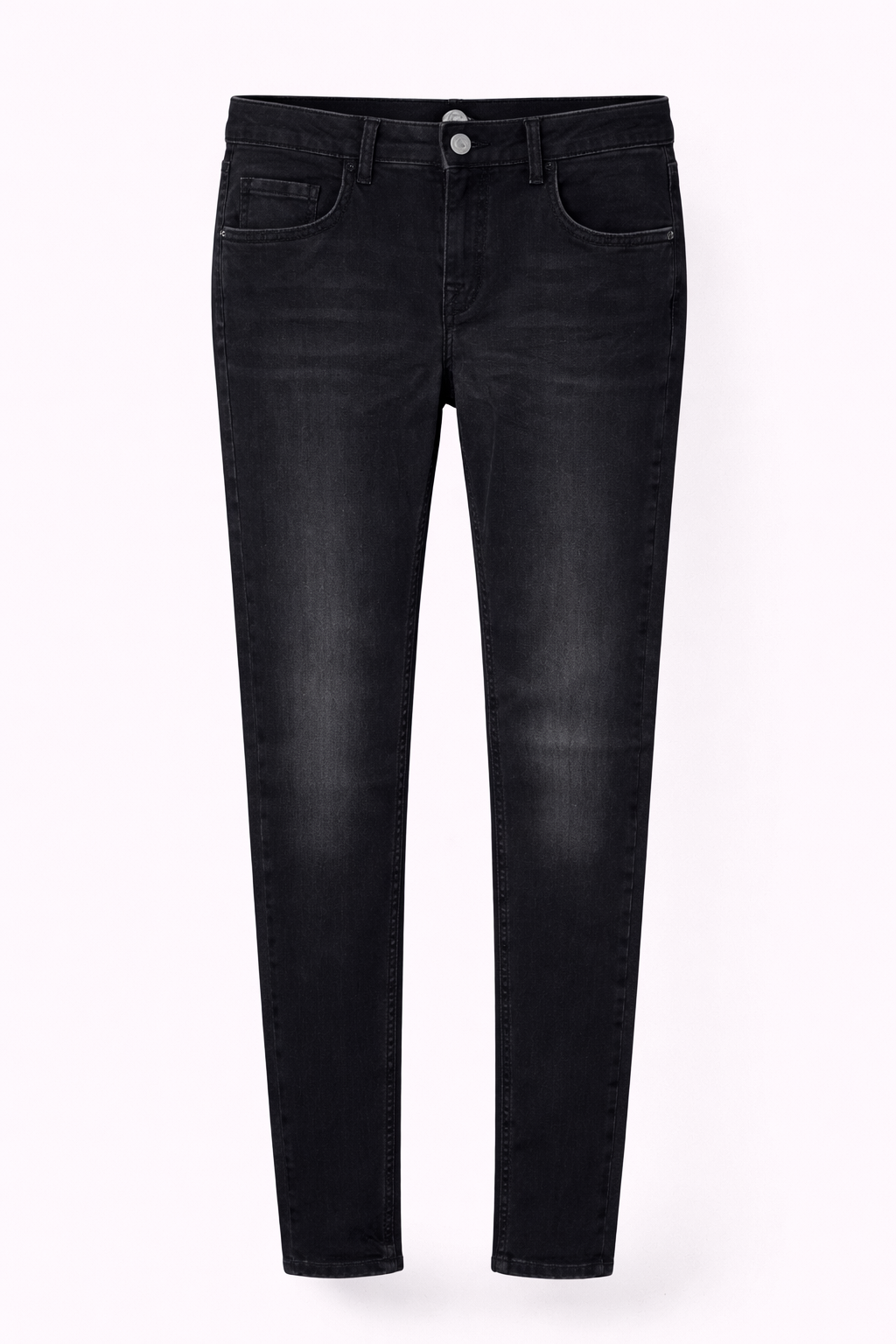 • Slim-fit black stretch jeans with a classic five-pocket design and a clean, ankle-length silhouette